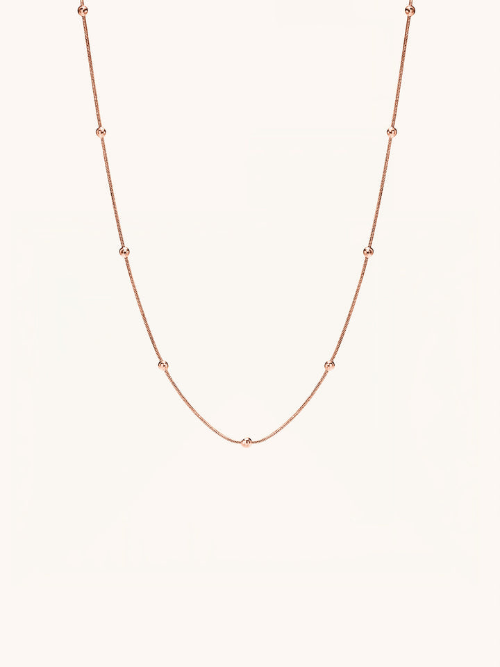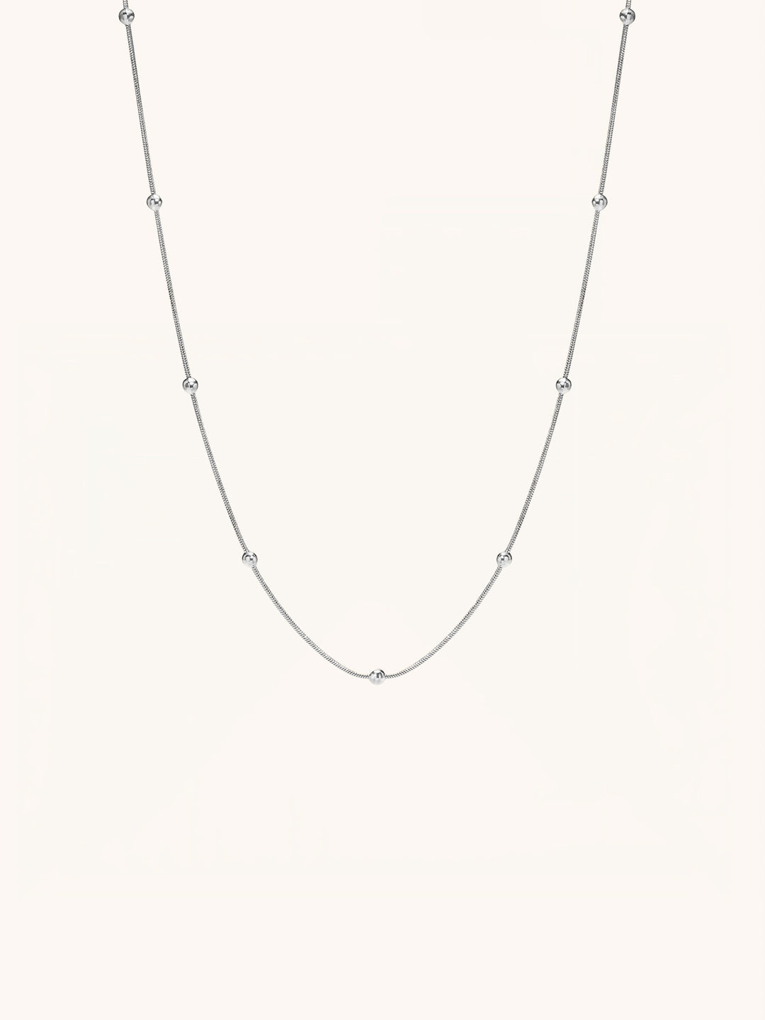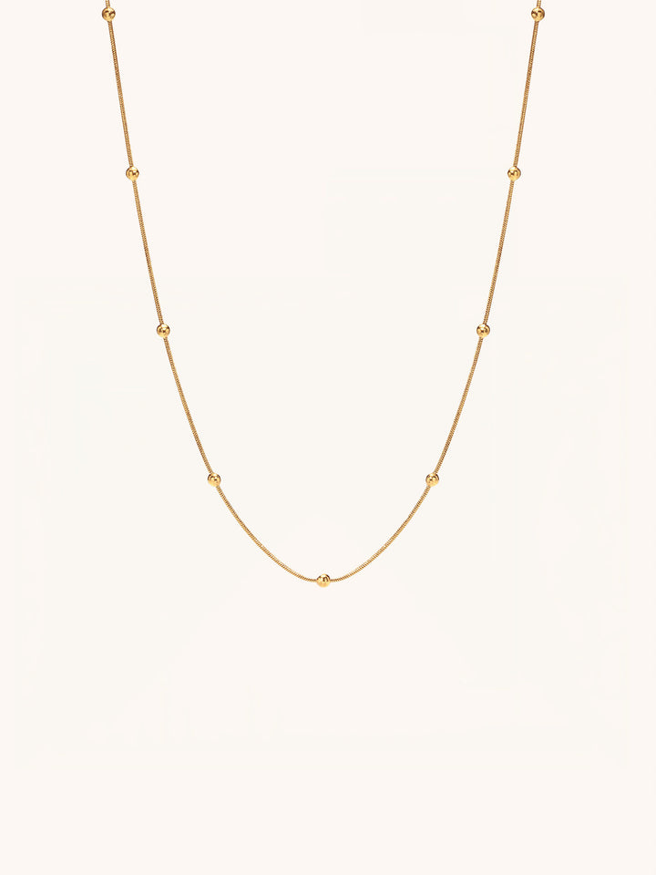 Timeless, versatile, and effortlessly chic — the Rhea Necklace is your everyday essential. Designed with delicate satellite beads along a sleek snake chain, it offers just the right amount of shine whether worn solo or layered with your favorite pieces.
