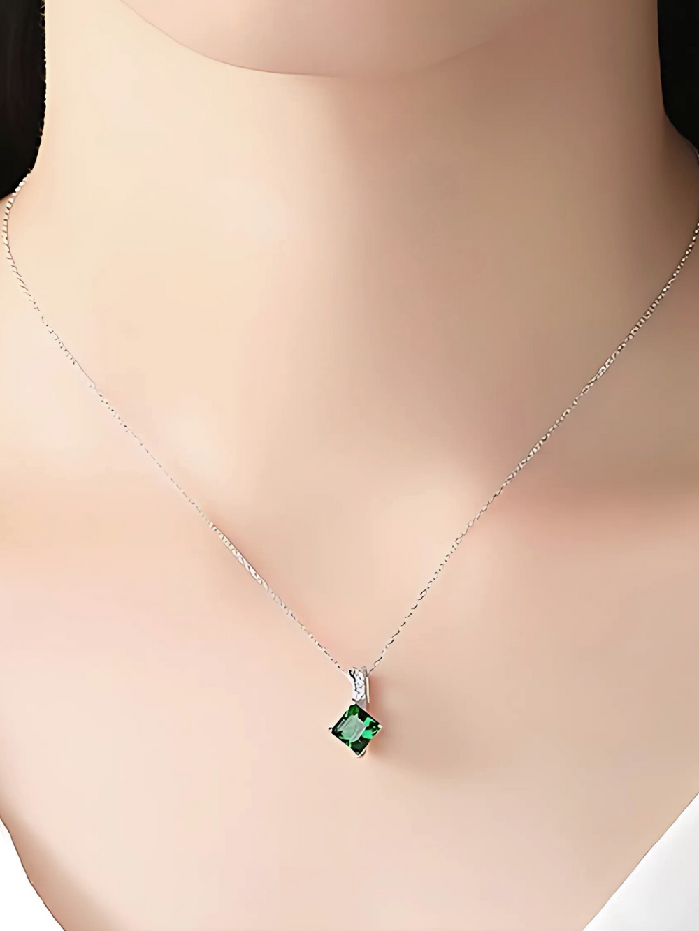 ROBBIE Emerald Diamond Sterling Silver Necklace -