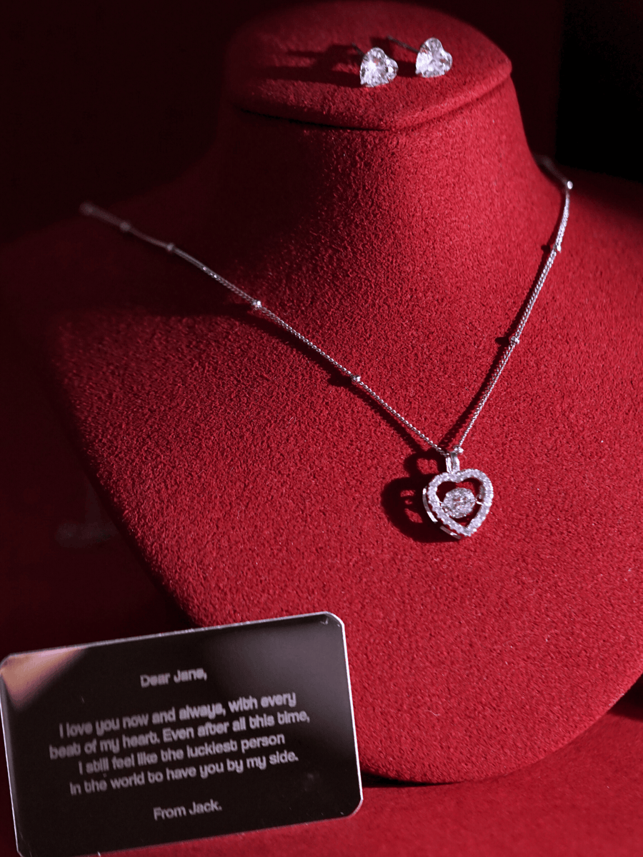 AMBER Dancing Diamond Heart Sterling Silver Necklace -
