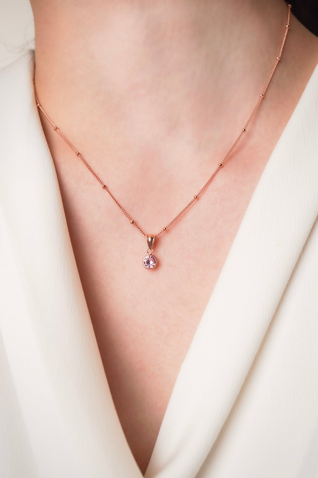 Especially for those who love classic styles, OLIVE is a sparkly round pendant wrapped around a rose gold frame expressed in a minimal and tasteful manner for modern-day women.