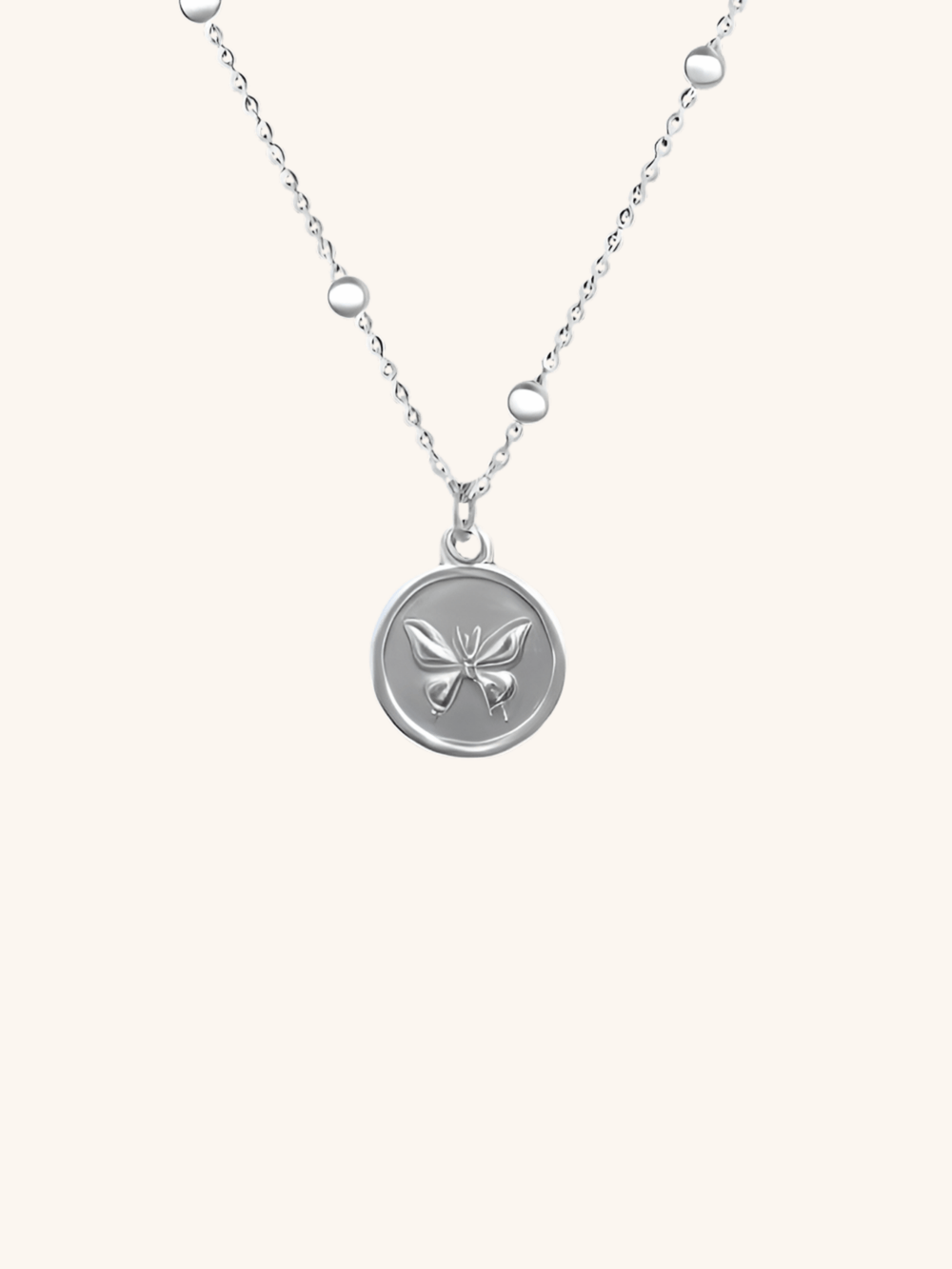 Butterfly Round Pendant Beaded Chain Necklace - Minimalist Lab