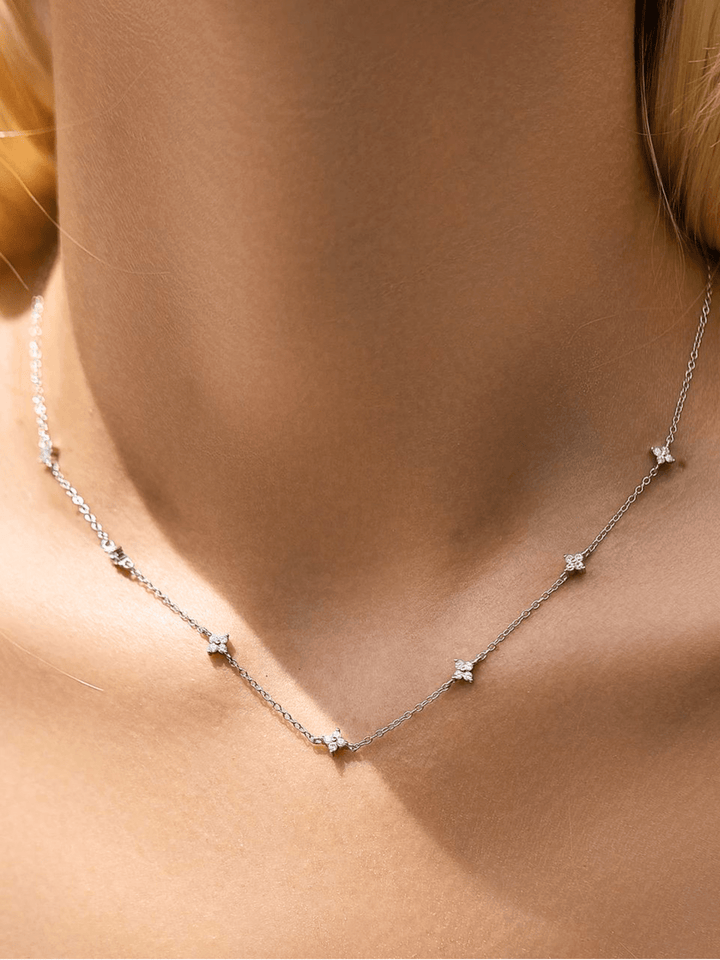 LAUREL Floral Diamonds Sterling Silver Necklace