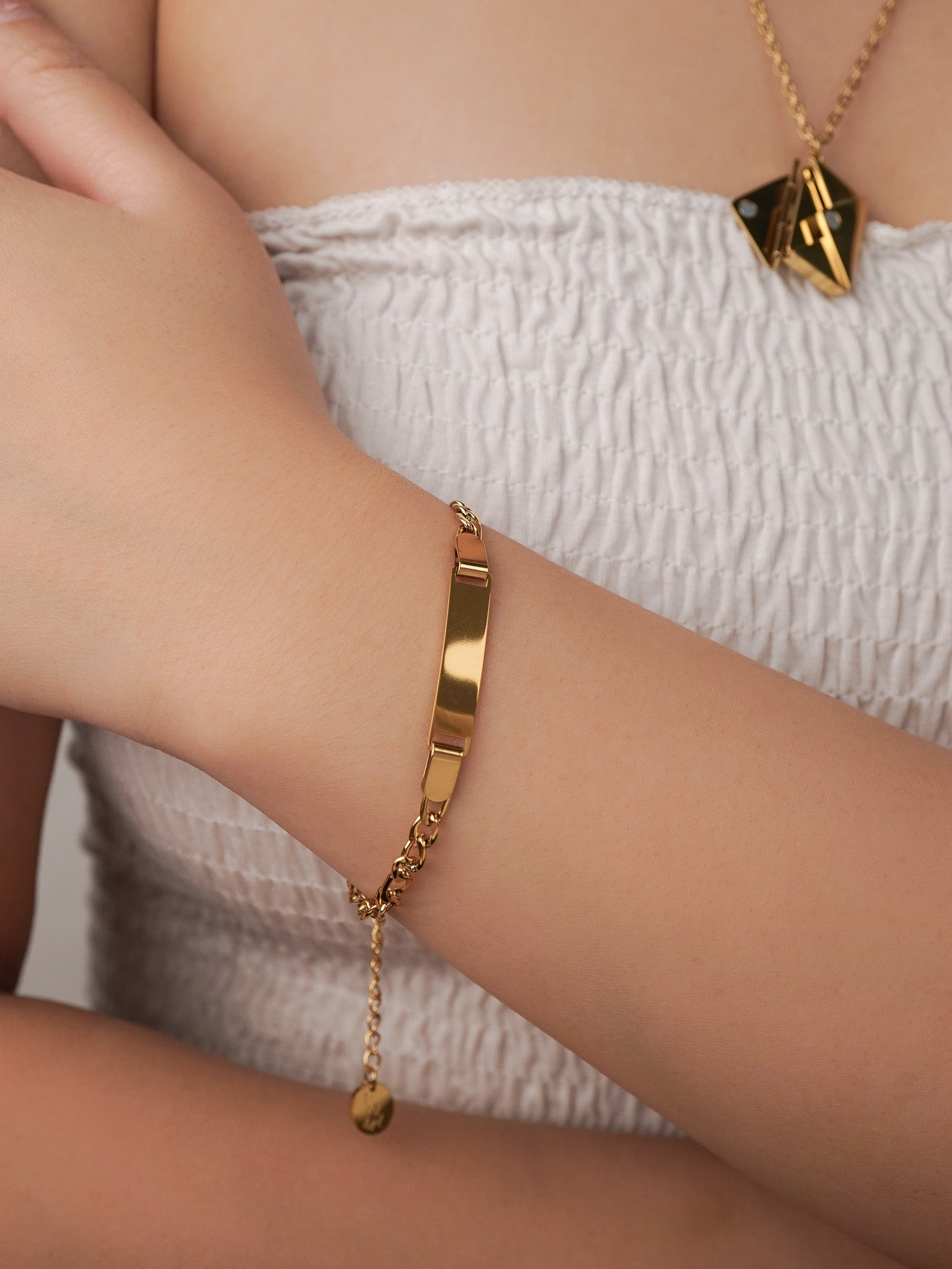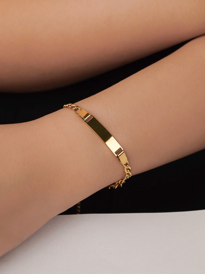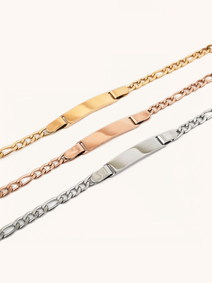 Classic Figaro chain with a refined engravable plate.