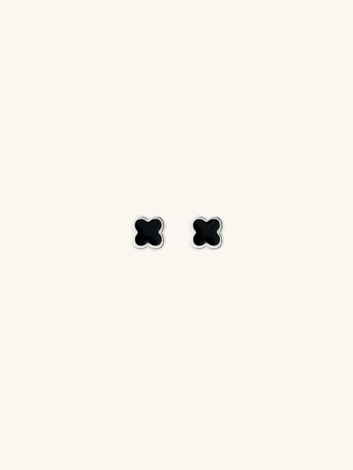 Black Clover Stud Barbell Earrings - Minimalist Lab