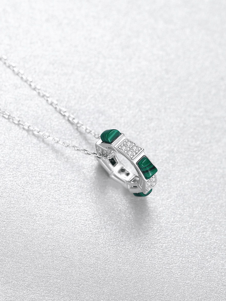 THEO Malachite Ring Pendant Sterling Silver Necklace